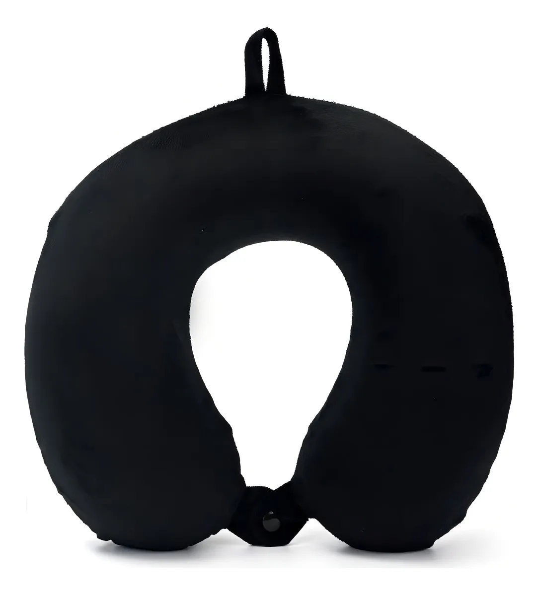 El elegante color negro y el diseño liso de la tela no solo aportan un toque de sofisticación, sino que también facilitan su limpieza y mantenimiento. La funda es suave al tacto y resistente, asegurando la durabilidad de tu almohada viaje tras viaje.