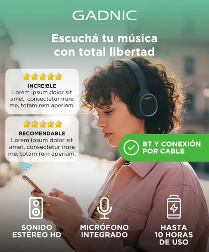 Los Auriculares Gamer Inalámbricos Gadnic HP63 ABLUE163 ofrecen una experiencia de audio clara y envolvente gracias a sus parlantes de 40 mm con rango de frecuencia de 20 Hz a 20 kHz y sensibilidad de 109±3 dB, ideales para graves profundos y agudos definidos. Su conectividad Bluetooth 5.3 permite un emparejamiento rápido y estable con teléfonos, tablets y notebooks, soportando perfiles HSP, HFP, A2DP y AVRCP, con un alcance de hasta 10 metros para moverse libremente mientras se escucha música, videos o se atienden llamadas. Diseñados con vincha acolchada, proporcionan comodidad y sujeción durante largas sesiones de uso. Su batería de 300 mAh ofrece hasta 10 horas de reproducción o conversación, y se carga completamente en solo 2 horas vía Micro-USB, asegurando autonomía confiable. Además, incluyen puerto de 3,5 mm para uso con cable y controles integrados para ajustar volumen, reproducir o pausar y cambiar de pista sin necesidad de acceder al dispositivo. Los auriculares se entregan con cable de carga y manual de usuario, ofreciendo versatilidad y comodidad para quienes buscan calidad de sonido y practicidad en su día a día.