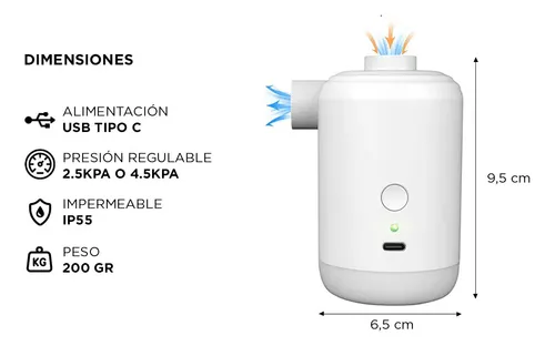 Compacto y Portátil: El diseño compacto de este inflador facilita su transporte y almacenamiento. Llévalo contigo a acampadas, picnics o vacaciones, y disfruta de la comodidad de tener un inflador portátil siempre a tu alcance.