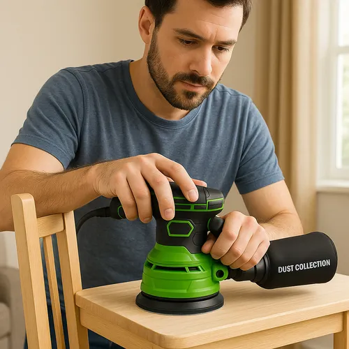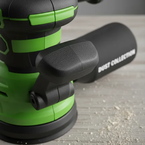 Su diseño ergonómico y su color verde distintivo no solo la hacen atractiva, sino que también garantizan un manejo cómodo durante largas jornadas de trabajo. La base de 125 mm es perfecta para alcanzar áreas difíciles y proporciona un lijado uniforme, minimizando el riesgo de marcas o imperfecciones.
