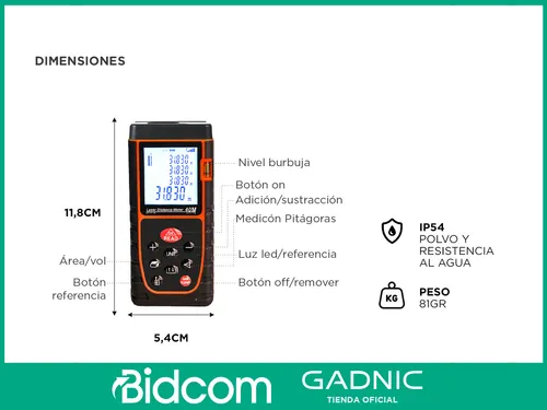 Medidor Distancia Laser Gadnic Metro Portatil Pantalla Lcd