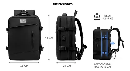 Mochila de Viaje South Port MCH228 Expansible Para Equipaje Con Puerto USB Impermeable