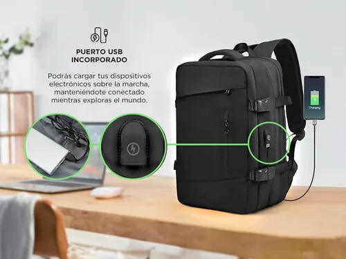 Confeccionada en poliéster resistente, cuenta con múltiples compartimentos estratégicos: bolsillo externo con cierre, división interna con malla y bolsillo para equipaje con hebilla de seguridad. Incluye un compartimento acolchado para notebook de hasta 17 pulgadas, protegido contra golpes, y puerto de conexión múltiple para mantener tus dispositivos cargados mientras te movés. Además, sus correas ajustables y su manija de transporte aseguran un traslado cómodo en todo momento.