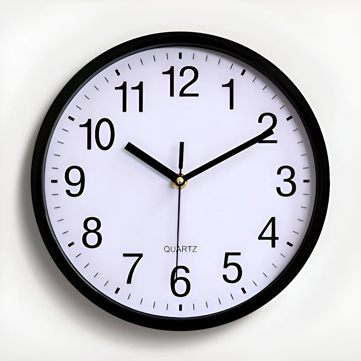 Reloj de pared minimalista, muy clasico, es silencioso, con aguja continua. Estampa blanca y con marco color negro, marca la hora, minuto y segundo.