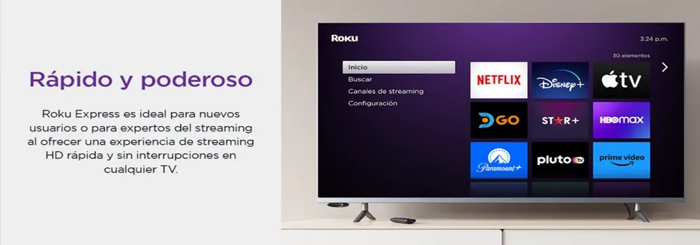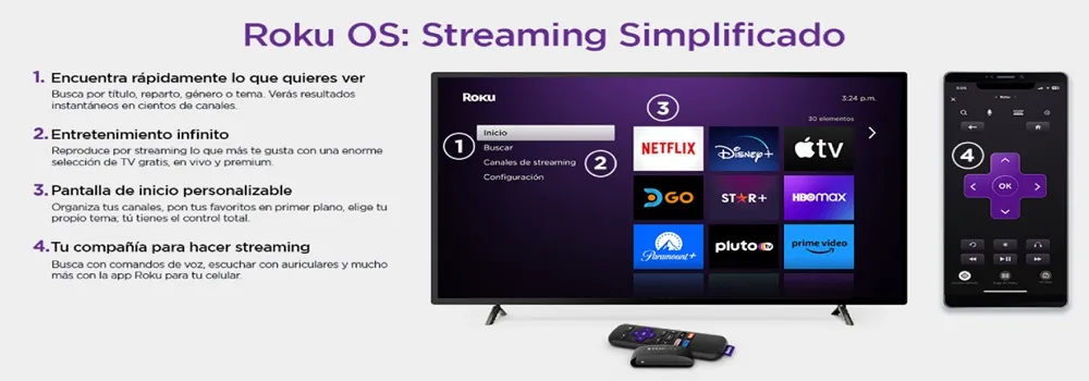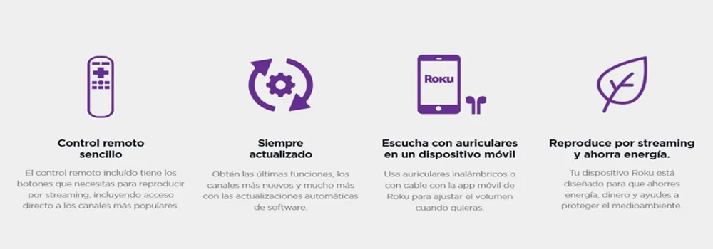 * Funcion escucha con auriculares: usa la app móvil del Roku en iOS o Andriod y sube el volumen con tus auriculares.