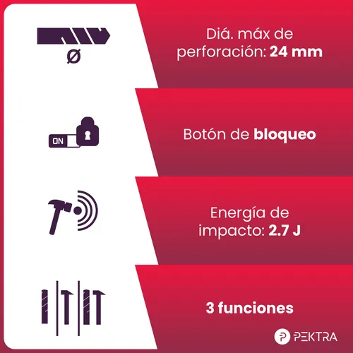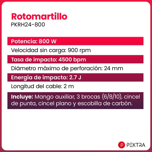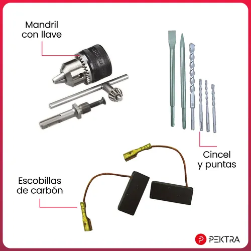 ROTOMARTILLO PERCUTOR PEKTRA 800W CON MALETÍN + ACCESORIOS.