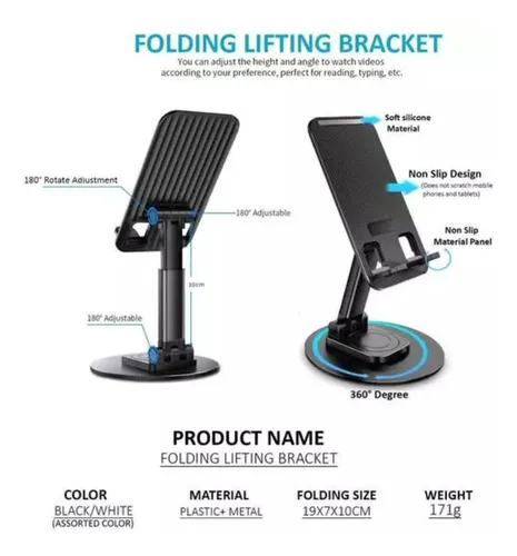 SOPORTE APOYA CELULAR TABLETS EXTENSIBLE GIRATORIO DE MESA: