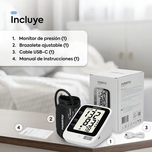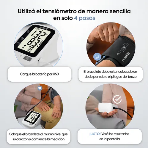 Tensiometro Digital Brazo Batería Recargable Usb Medidor Aparato Para Tomar Presion Arterial Automatico Femmto